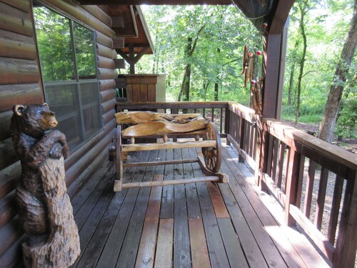 ($30 per night & only for cabin guests' use) Covered front porch with swing is an amazing plus for this cabin. They all come equipped with modern amenities to make your stay a memorable one, and we promise, you'll never want to leave. The cabin has a king size bed & a queen size sleeper sofa. Vaulted ceilings and back deck view.